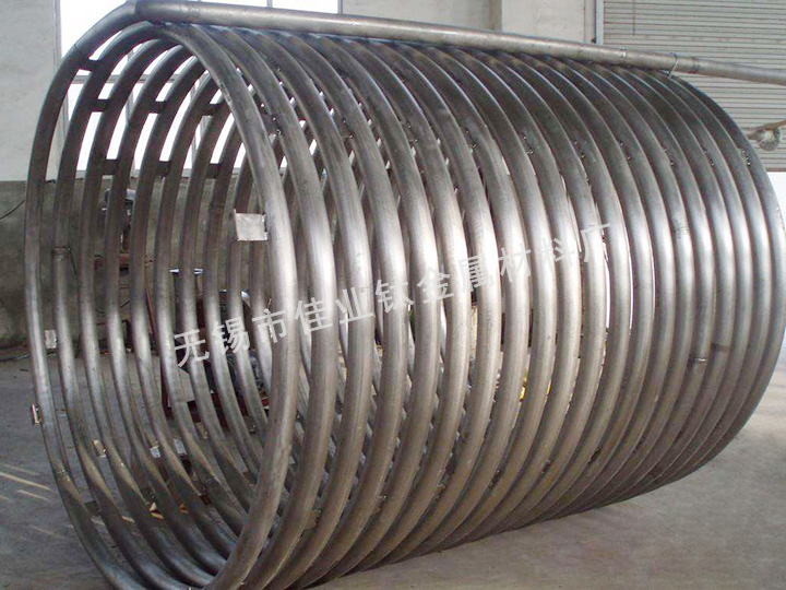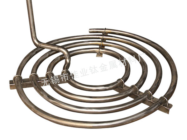 鈦盤管主要用來作為容器的加熱和冷卻,鈦盤管的固定方式分為可拆和不可拆2種,這要根據(jù)物料的介質(zhì)和對鈦盤管的腐蝕情況而定,但在設(shè)計中主要以可拆式為主,方便鈦盤管的檢修及清洗。